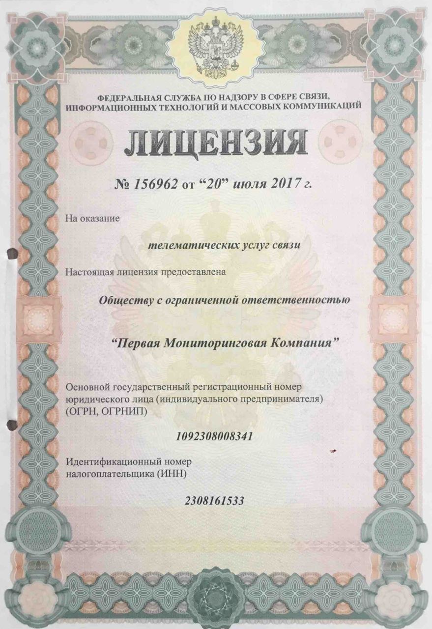 Первая Мониторинговая Компания уделяет особое внимание соблюдению всех требований законодательства и стандартов качества. Мы ведём свою деятельность на основе официальных разрешений и сертификаций, подтверждающих нашу правоспособность, технологическую зрелость и надежность как поставщика решений в области транспортной телематики и цифровизации автопарков.