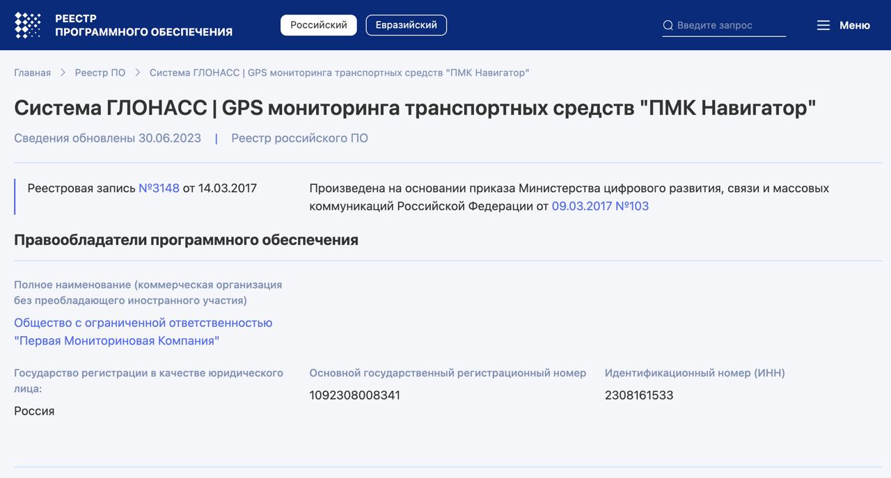 Программный продукт «ПМК Навигатор» включен в официальный реестр отечественного ПО. Это подтверждает его российское происхождение, независимость от иностранных вендоров и соответствие требованиям для использования в государственных, муниципальных и коммерческих структурах в рамках политики импортозамещения.