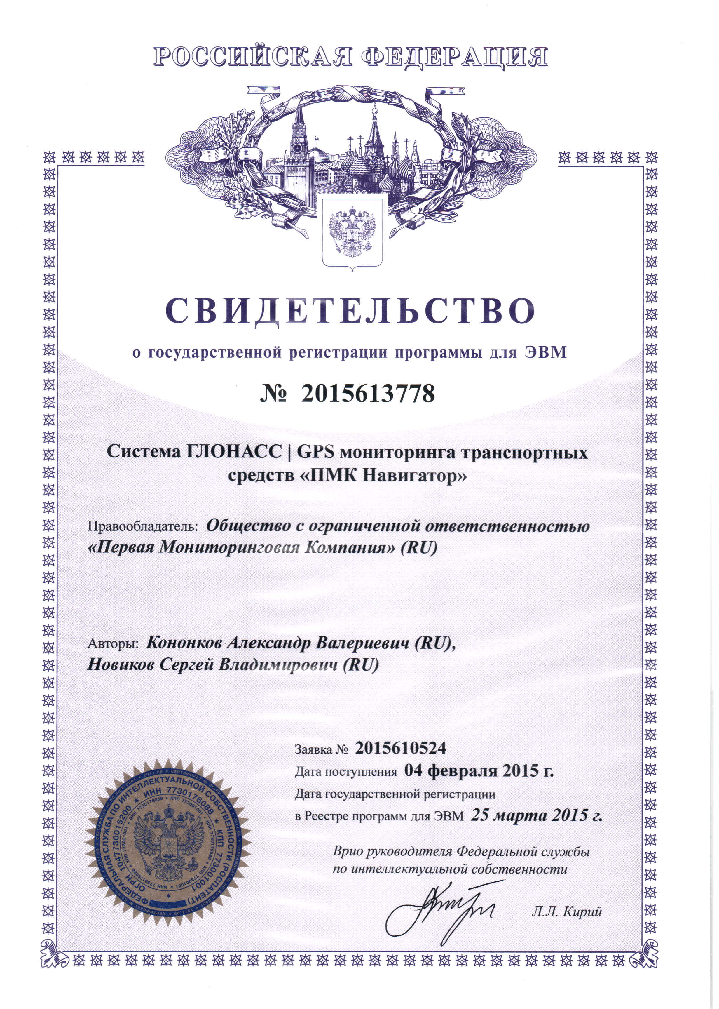 Документ подтверждает, что программное обеспечение «ПМК Навигатор» зарегистрировано как интеллектуальная собственность. Это была первая версия собственной системы мониторинга транспорта, разработанной ПМК до появления платформы Waliot. Свидетельство подтверждает авторские права на продукт и его юридическую защиту.