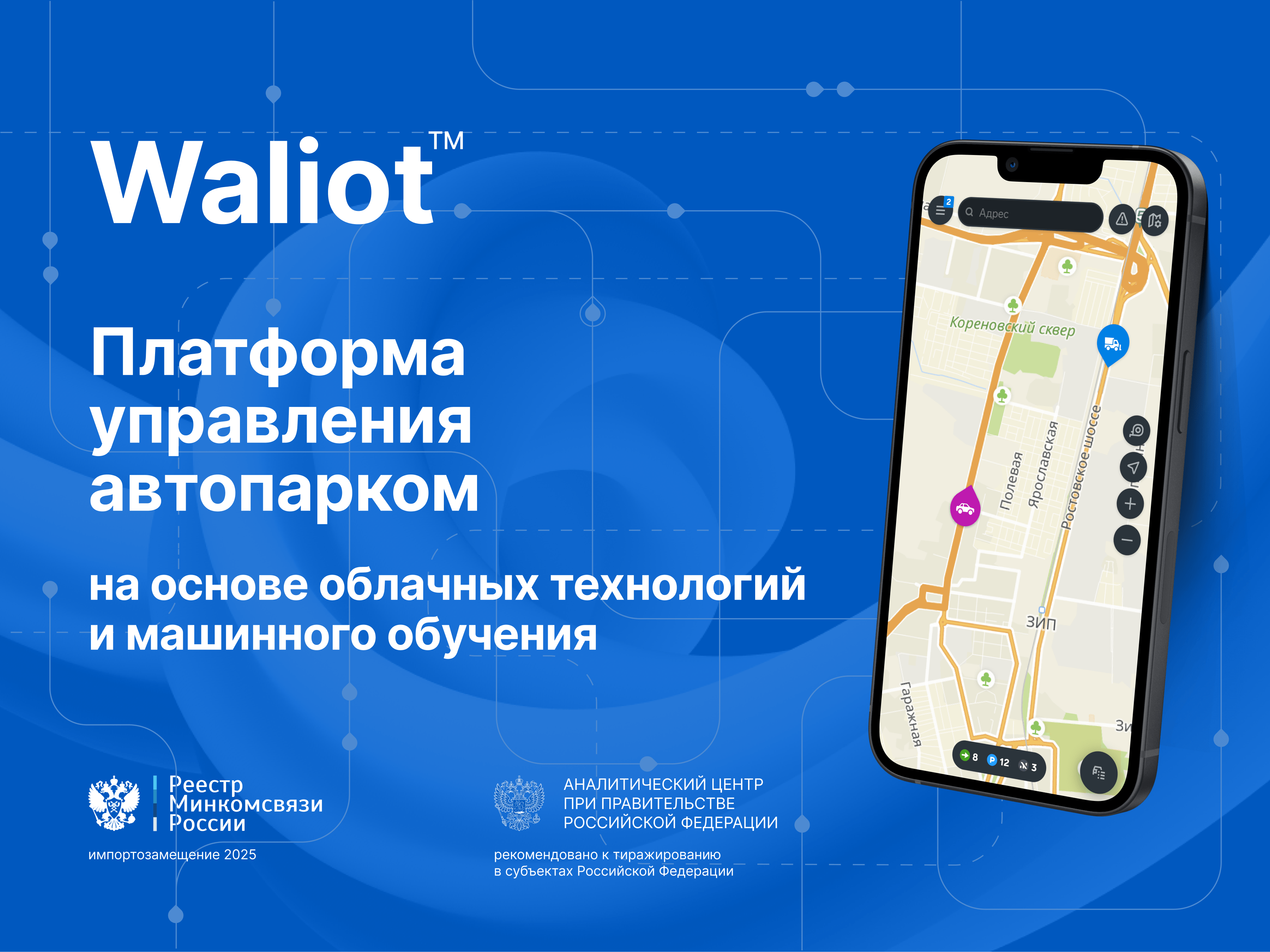 Waliot — это российская платформа управления автопарками, разрабатываемая ООО «Первая Мониторинговая Компания». Платформа как программное обеспечение относится к классу систем спутникового мониторинга транспорта и предназначено для отслеживания местоположения, движения и технического состояния транспортных средств в режиме времени приближенного к реальному. Waliot — технологически зрелая, независимая и полностью российская платформа, обеспечивающая полный цикл цифрового управления транспортом.