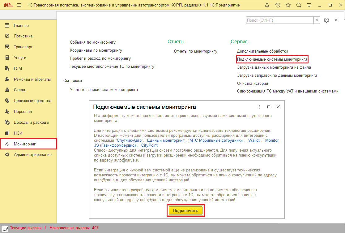 Откройте обработку: Мониторинг → Синхронизация ТС между УАТ и внешними системами.