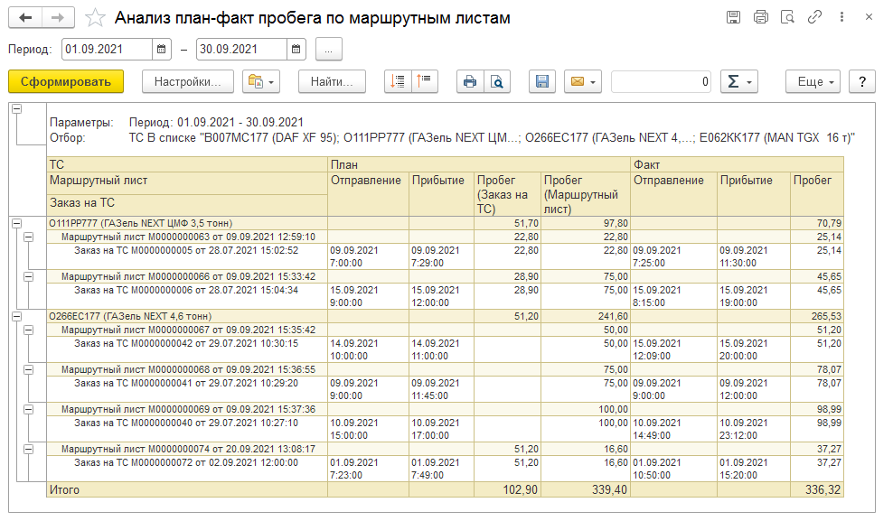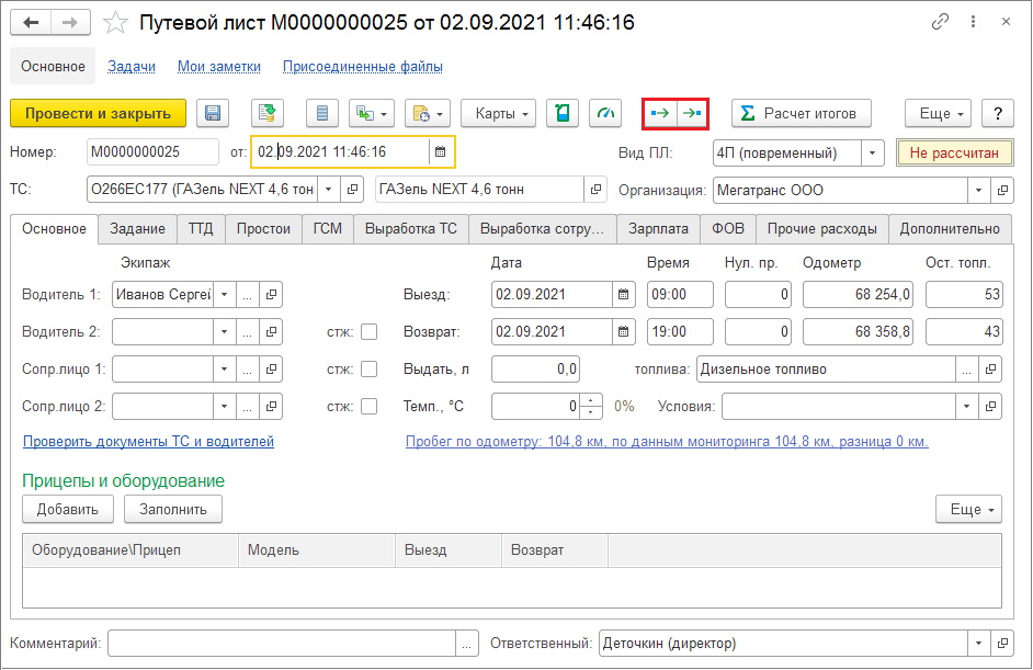 Создайте и запишите путевой лист (без расчета итогов), затем запустите нужную операцию.